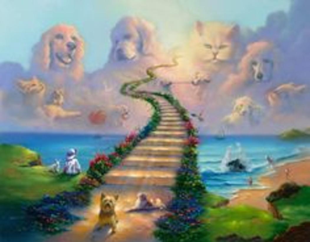 All the animals who had been ill and old are restored to health and vigor. Those who were hurt or maimed are made whole and strong again, just as we remember them in our dreams of days and times gone by. The animals are happy and content, except for one small thing; they each miss someone very special to them, who had to be left behind.